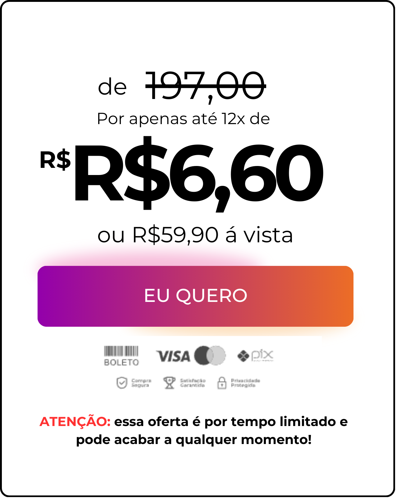 Oferecemos uma garantia de 7 dias: se não estiver satisfeito com os resultados, basta nos avisar e realizaremos o reembolso integral do valor investido. Sem risco!